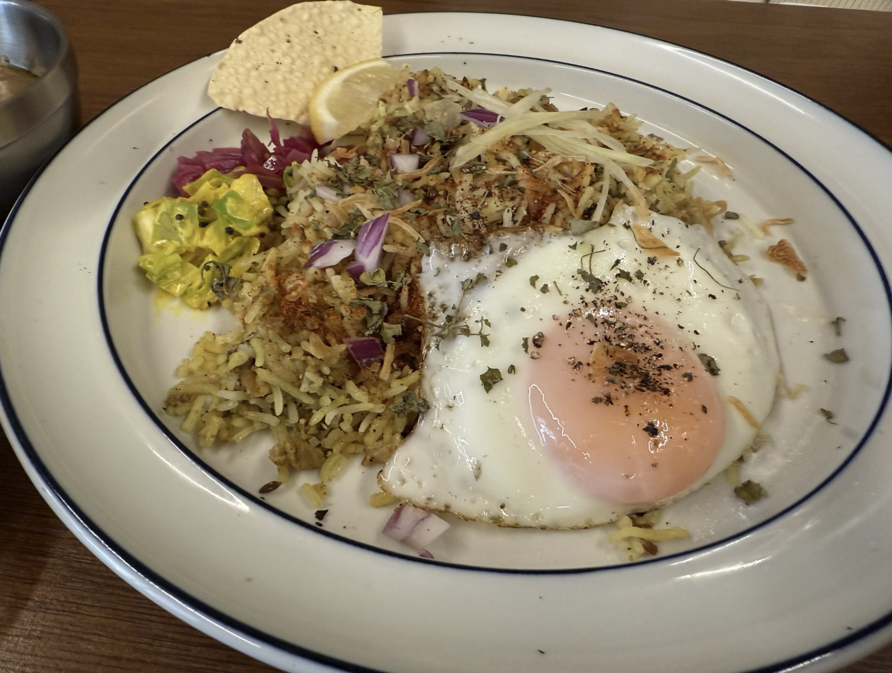 一緒に頼んだビリヤニは至福。添えられたカレーソースとヨーグルトソースでいつまでも飽きずに食べられる。