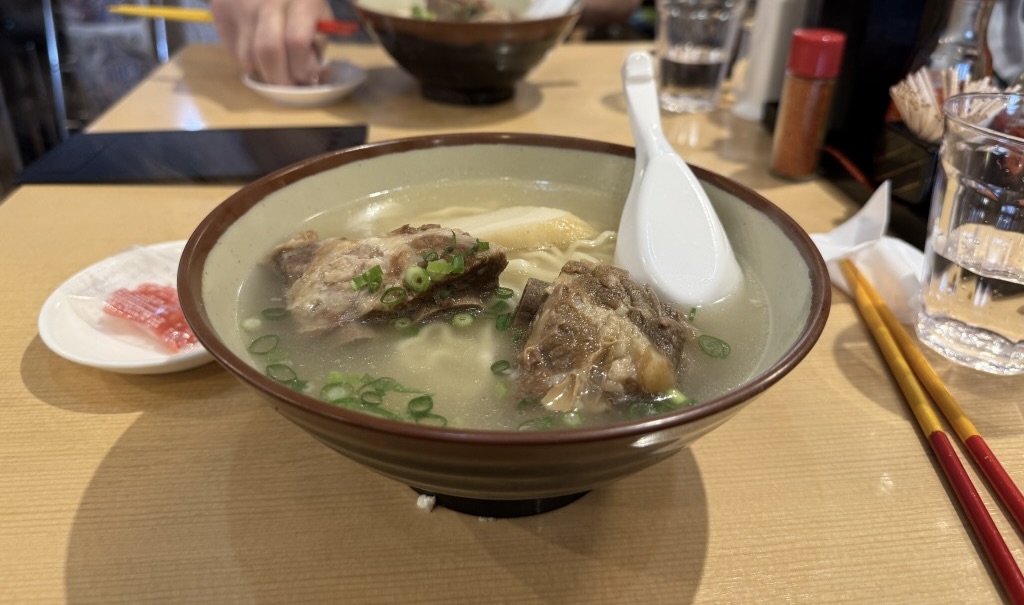 ソーキそばを注文。ここのソーキは筆者の沖縄のおばーの味に似ている。とても安心する味だ。