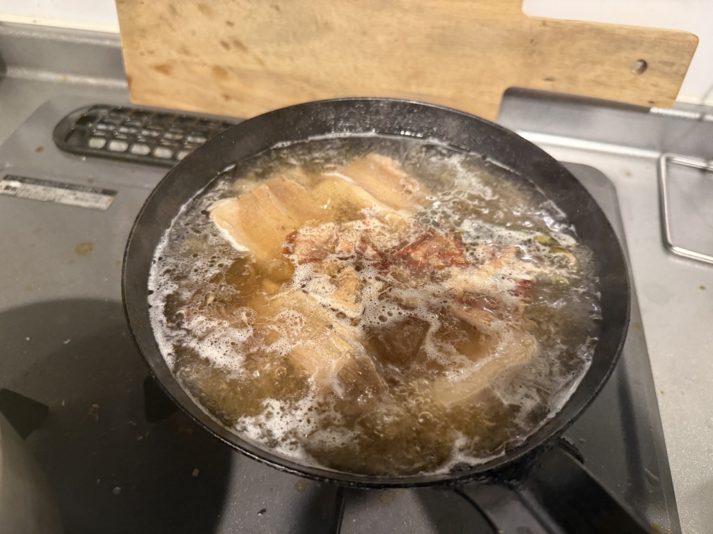 まず一番に苦戦するのがソーキと三枚肉作り。これを普通に鍋でやろうとしたら何時間も煮込まないといけない。沖縄のおばーはどうやって作るのか聞いてみたら圧力鍋を使うと言っていたが、あいにく持ち合わせていない。